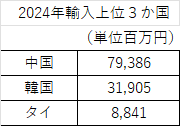 日本金型工業会の資料によると、2022年の金型生産高は1兆4,684億円である。この中で、金型の輸出額は1,942億円で、対前年比7.2%減となる中で、輸入額は13.2%増の1,416億円となっています。そして、輸出上位4か国と輸入上位3か国の状況は下記のとおりです。
